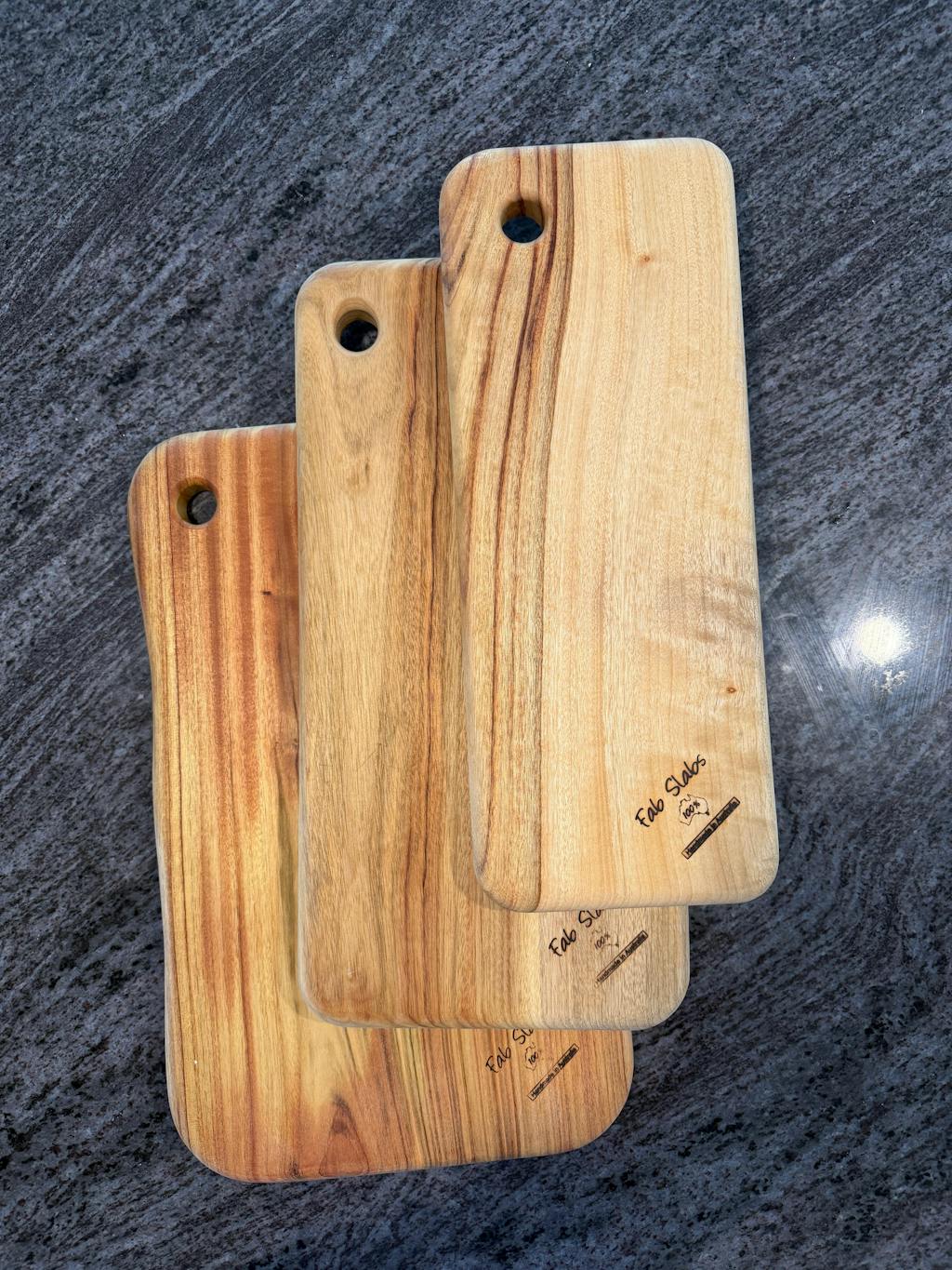 Fab Slabs boards are all handmade from 1 solid piece of Camphor Laurel timber and made with NO plastics, NO glues, NO joins, NO chemicals, making them a non-toxic board, free from microplastics or pathogens such as E. coli, salmonella, and other bacteria. Fab Slab Cutting Boards are naturally and permanently antibacterial and are the only company in the world that has proven they are bacteria free, even after 10 years of commercial and domestic use.